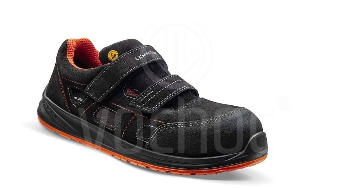 Bezpečnostní sandál Lemiatre BLACKSTRRIKER, broušená velurová hovězinová useň, extra široká polykarbonátová tužinka 200 joulů, planžeta z netkané textilie proti propichu. Antibakteriální podšívka 3D textil SPACER pro lepší odvod potu, antistatická podešev PERFORMANCE PU2D, odolná proti uhlovodíkům a jiným chemickým látkám. Vynikající protiskluzové vlastnosti SRC. Moderní sportovní design. Ochrana přední a zadní části svršku obuvi proti mechanickému poškození. Lehká a komfortní pracovní obuv.