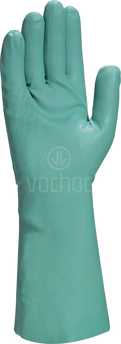 Rukavice s vysokou chemickou odolností poskytují spolehlivou ochranu proti chemikáliím i virům a jsou ideální pro práci s pesticidy. Nitrilový povlak zajišťuje výbornou přilnavost i v olejnatém a mastném prostředí, což usnadňuje bezpečnou manipulaci s předměty. Díky své zesílené konstrukci, větší délce a tloušťce 0,38 mm chrání nejen ruce, ale i předloktí. Nepudrované, voděodolné provedení bez latexu a silikonu je vhodné i pro citlivou pokožku.