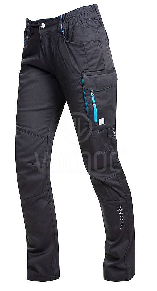 Dámské moderní pracovní kalhoty z kolekce Ardon FLORETergonomického střihu z elastického materiálu s gumou v pase a poutky pro opasek. Kalhoty mají reflexní paspule a prvky pro vyšší viditelnost, několik prostorných multifunkčních kapes, anatomicky tvarovaná kolena. Zdvojená záložka - možnost prodloužení délky nohavic.