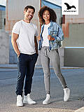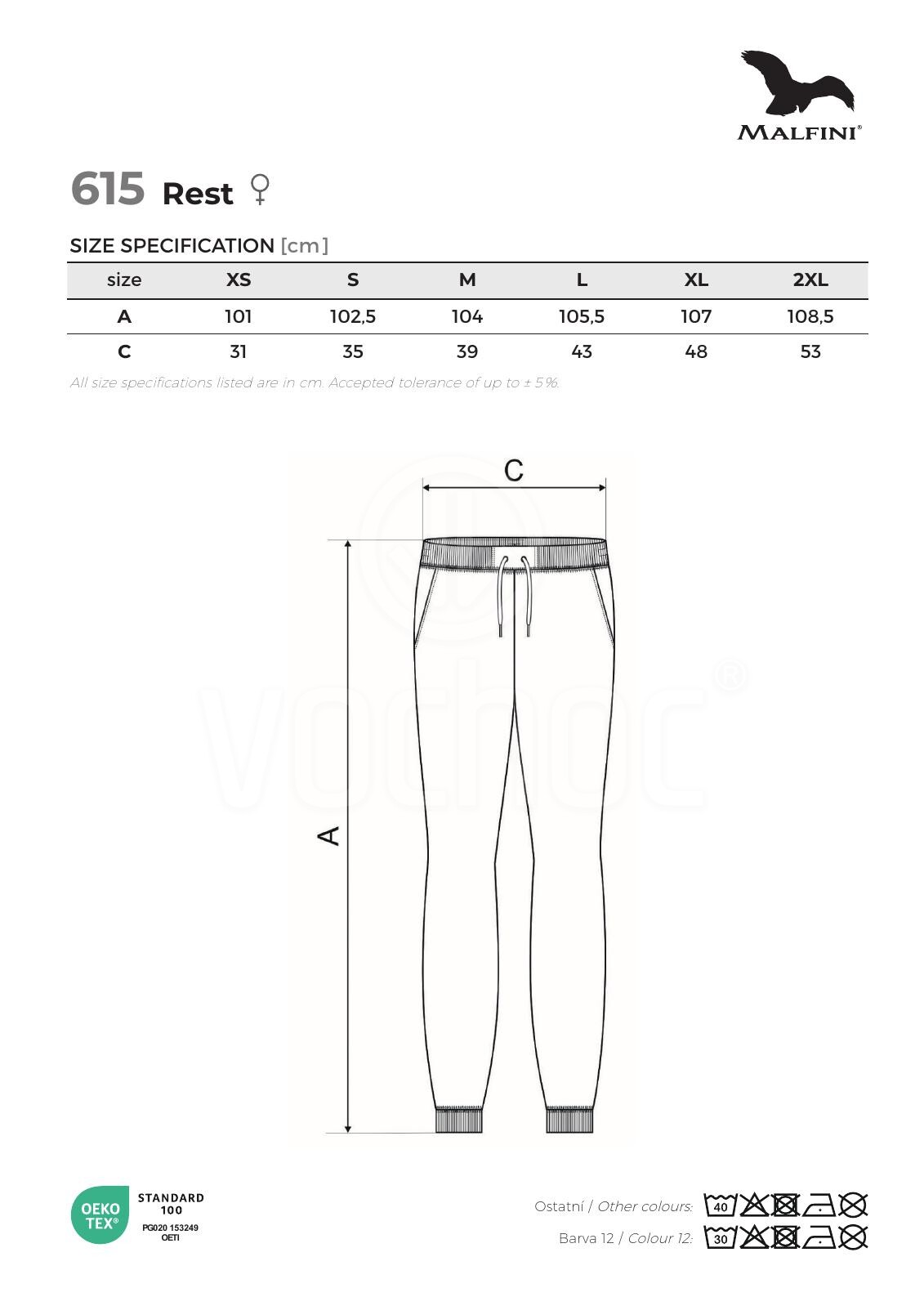 Dámské volnočasové kalhoty. Ideální pro sport a pohybové aktivity. Mírně zúžený střih nohavic. Dvě klínové přední kapsy, pasový límec a dolní lem z žebrového úpletu.