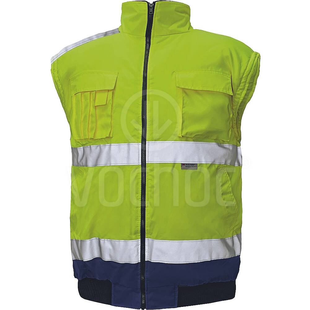 Zateplená dvoubarevná reflexní bunda do pasu. Pilotka má reflexní pásky