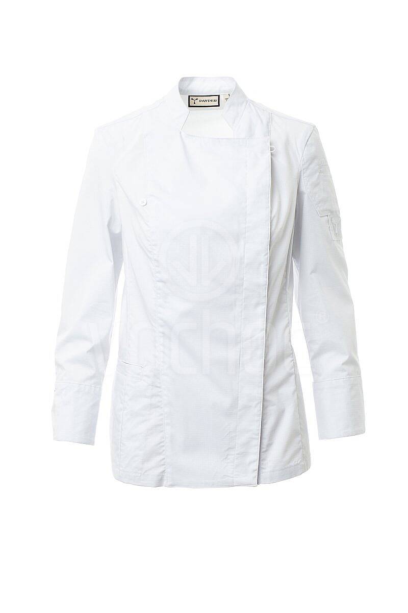 Dámský kuchařský rondon se stojáčkem je vyroben z odolného bavlněného ripstopu s příměsí Lycry® T400®, která zajišťuje výjimečnou elasticitu, tvarovou stálost a vysokou prodyšnost. Pohodlí při celodenním nošení podporují prodyšné síťované panely na zádech a v podpaží, které efektivně odvádějí teplo a zvyšují cirkulaci vzduchu.