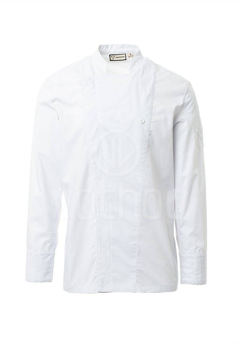 Pánský kuchařský rondon se stojáčkem, vyrobený z odolného bavlněného ripstopu s příměsí Lycry® T400®, nabízí vynikající elasticitu, tvarovou stálost a vysokou prodyšnost. Maximální komfort při práci zajišťují prodyšné síťované panely na zádech, v podpaží a v průramcích, které podporují cirkulaci vzduchu i během náročných směn.