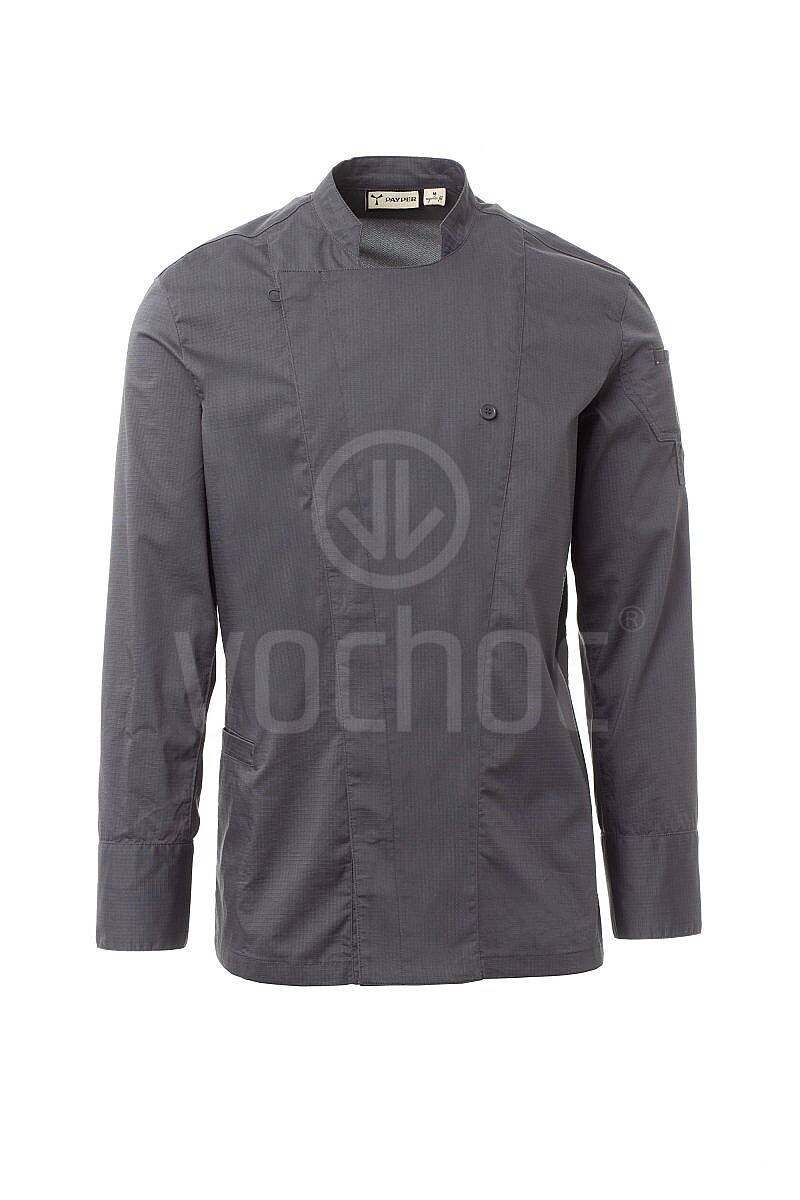 Pánský kuchařský rondon se stojáčkem, vyrobený z odolného bavlněného ripstopu s příměsí Lycry® T400®, nabízí vynikající elasticitu, tvarovou stálost a vysokou prodyšnost. Maximální komfort při práci zajišťují prodyšné síťované panely na zádech, v podpaží a v průramcích, které podporují cirkulaci vzduchu i během náročných směn.
