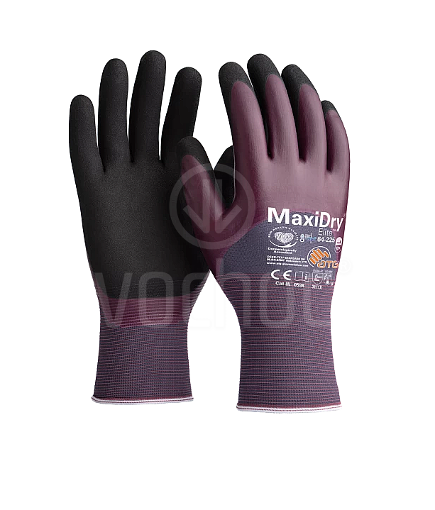Rukavice MaxiDry Elite s tloušťkou materiálu pouhých 0,7 mm jsou nejtenčí a nejlehčí montážní rukavice pro použití v prostředí s přítomností olejů, jaké v řadě ATG byly vyrobeny. Rukavice jsou 3/4 nánosové a mají náplet na zápěstí. Dělka rukavic je 25 cm. Rukavice jsou pro použití v v mastném nebo vlhkém prostředí.