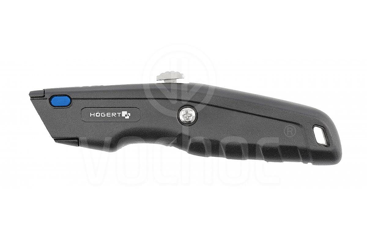 Lehký bezpečnostní nůž s lichoběžníkovou čepelí, víceúčelový, užitečný při dokončovacích pracích. Určený zejména k řezání lepenky,