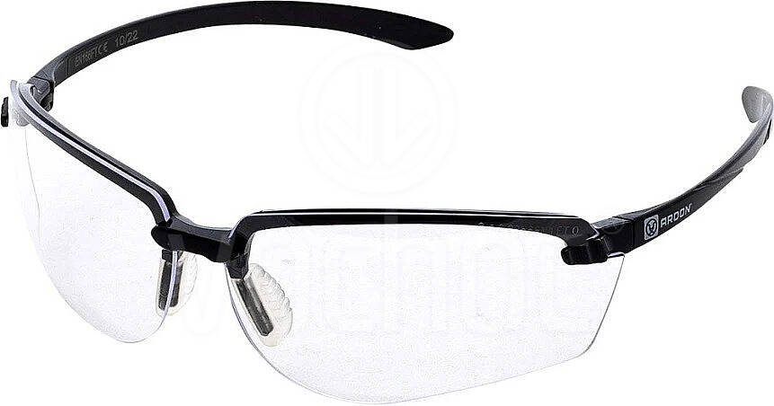 Extrémně lehké ochranné brýle moderního sportovního designu s matnými polykarbonátovými straničkami. Široký čirý polykarbonátový zorník, chrání proti UV záření, je v nemlživé úpravě, odolný proti poškrábání, odolává nárazu částic o nízké energii (až 45 m/s) a to i při extrémních teplotách (-5°C - +55°C). Zaručuje mimořádnou ochranu a vynikající zorné pole. Tvarovaný ergonomický nosní můstek zajišťuje vysoký stupeň pohodlí. Optická třída 1 – určené k dlouhodobému nošení. Povrchová úprava proti zamlžení a oděru.