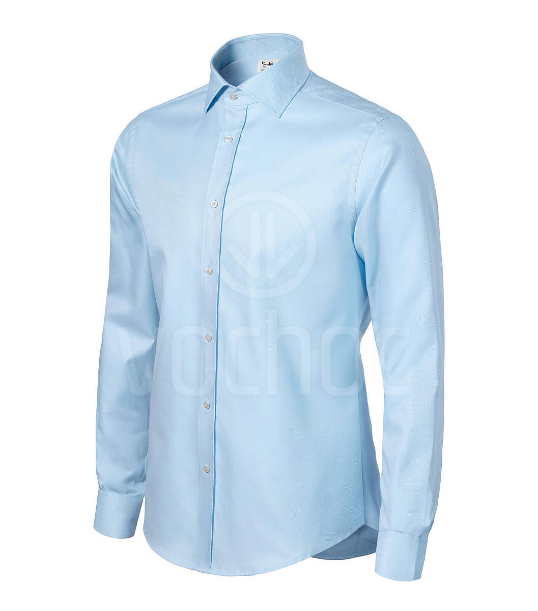 Pánská košile navržená předním českým krejčím Romanem Humlíčkem. Příze z extra dlouhých vláken, zúžený střih s bočními švy, dvojité sedlo a záševky na zadním dílu, dvoudílný košilový límec, vyztužené špičky límce, přední kraje začištěny légou. Dlouhé rukávy s kulatou manžetou na 2 knoflíčky. Tvarovaný dolní okraj.