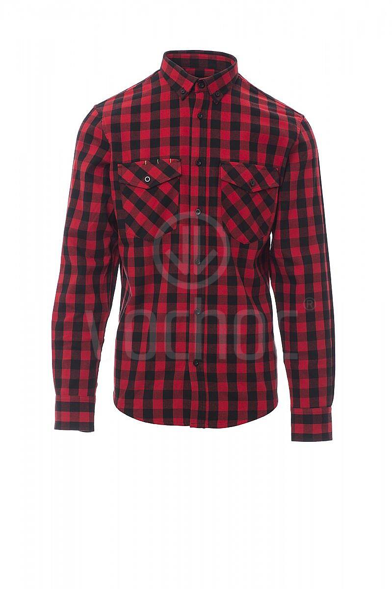 Skotská košile s dlouhým rukávem s perleťovými knoflíky, anglický propínací límeček, sedlo na zadní straně, dvě kapsy na hrudi s klopou na knoflík a kapsičkou na tužku.