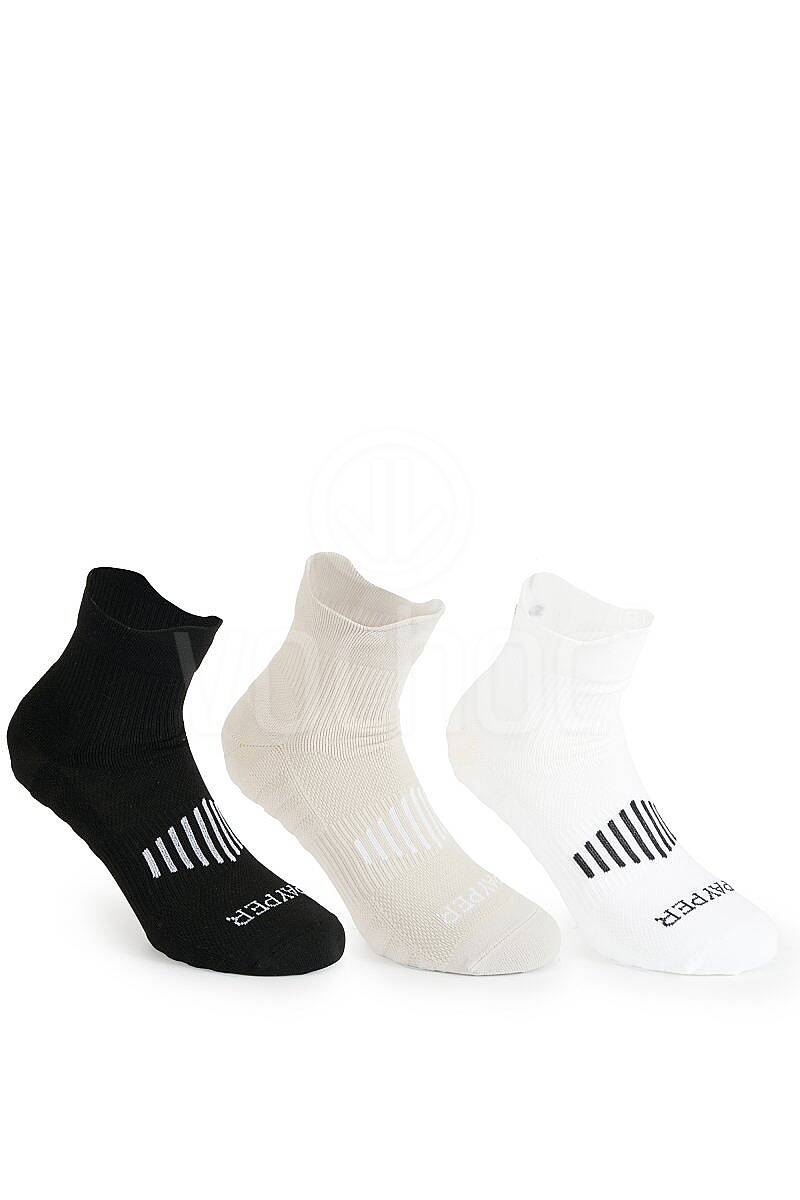 Kotníkové ponožky, sportovní, s tlumící oporou nožní klenby a zadní strany kotníku, ergonomické v oblasti nártu. Ponožky jsou vhodné na práci i volný čas. Nezaměnitelná vrtule Payper na zadní straně a logo na přední straně. Balení obsahuje 3 páry.