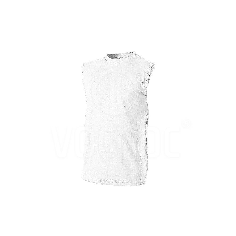 Triko bez rukávů s kulatým lemem u krku, kvalitně šité. Dvojitě prošité u krku, ramenou a spodního okraje. Saténová etiketa.