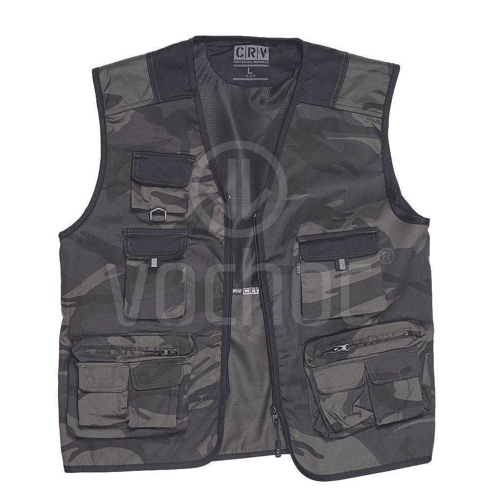 CRAMBE vesta s multifunkčními kapsami ve skvěle padnoucím střihu. Maskovaná vesta má 11 kapes!