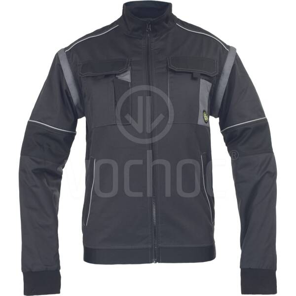 Pánská strečová pracovní bunda s odepínacími rukávy. Zapínání na zip krytý légou. 2 boční kapsy, 2 náprsní kapsy s klopu na suchý zip. Zesílení namáhaných částí ramen. Odepínací rukávy s pružnými manžetami. Pružný spodní obvod v pase. Reflexní prvky.