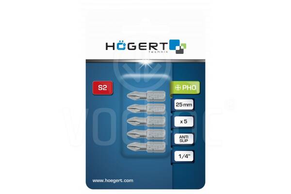 Sada PH šroubovacích bitů. Vyrobeno z  oceli S2 (tvrdost HRC 58-60). Baleno po 5 ks.