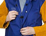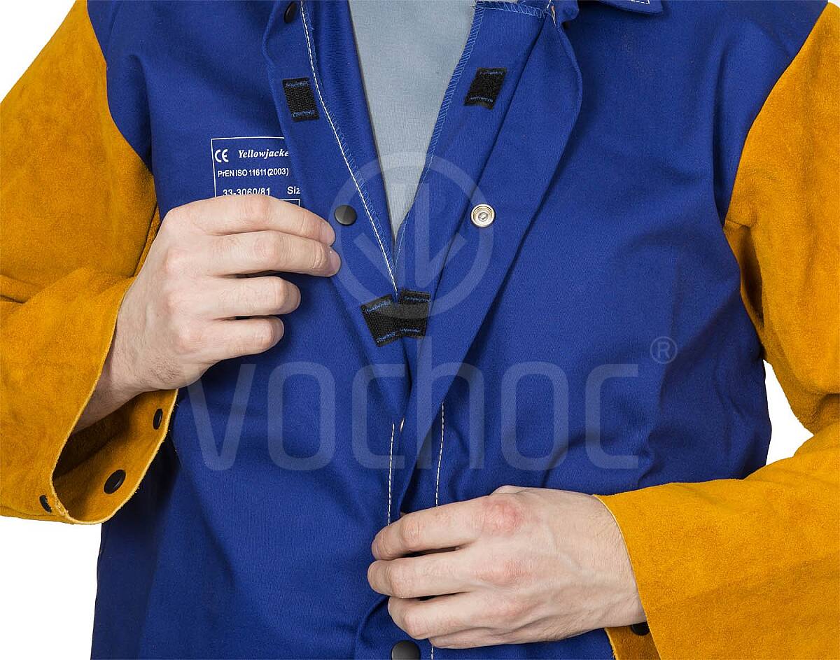 Pracovní svářečská blůza Weldas Yellow Jacket vyrobena z ohnivzdorné štípané hověziny a bavlněné tkaniny s nehořlavou úpravou. Plošná hmotnost tkaniny 315g/m2. Kevlarové nitě pro vyšší paevnost a životnost. Lehké materiály poskytují uživateli vyšší pohodlí.